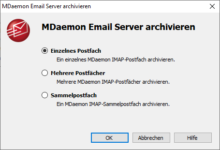 - Erstellen Sie ein neues Archivierungsprofil vom Typ MDaemon Email Server > Einzelnes Postfach.